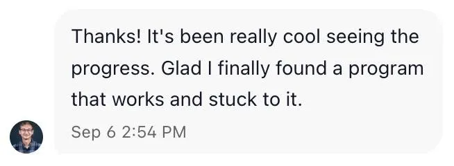 Every plan is designed around your specific goals, your equipment, and your lifestyle. And instead of paying $800 to $1,200 a month for just a couple in-person sessions per week , you’re investing in a program that gives you more value, way more access, and better results at a fraction of the cost.