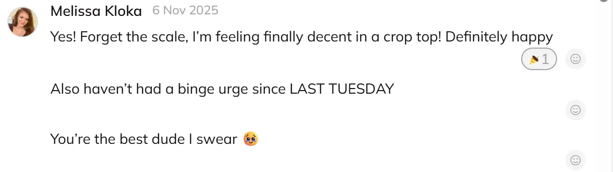 With in-person training, you’re paying for that one hour you spend together in the gym. Once you walk out, the support ends. And most of the time, it’s focused only on the workout, not your nutrition, not your lifestyle, not the other 23 hours of your day.
